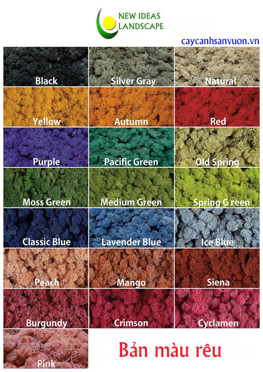 Bản màu của tường rêu quý khách có thể lựa chọn màu
